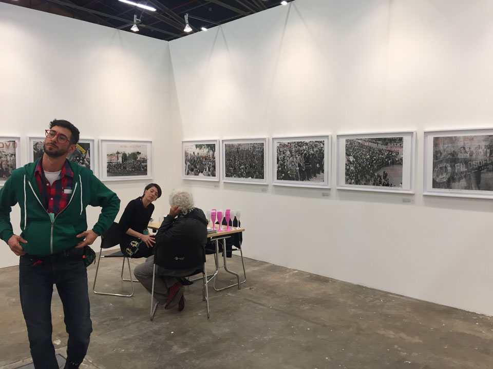 One work that caught my attention was a piece by Marcelo Brodsky, exhibited by Rolf Art Gallery from Argentina, who presents altered photographs captured during protests undertaken around the world. Cities like London, Rio de Janeiro, Montevideo, Washington, Bogota, Paris, Mexico City, São Paulo, Kingston, Prague and Milan, become the stars in the work ‘The Fire of Ideas’. In Brodsky’s hands, each one is giving a clearer identity, as he uses color and texts to highlight the collective feeling in the historical moment that they represent.