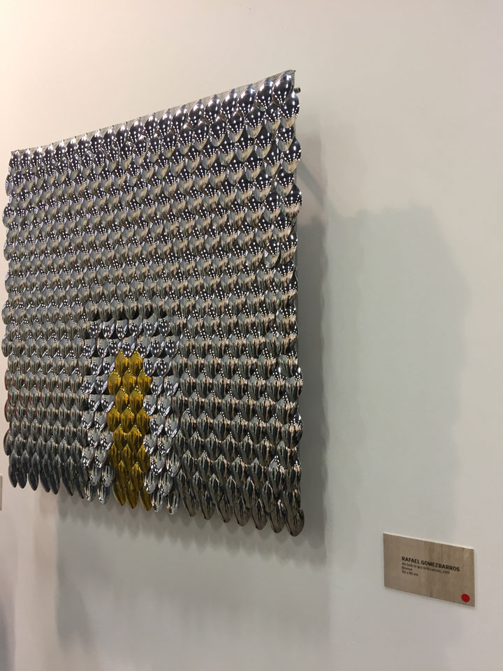 I was able to approach local galleries such as La Cometa and Sextante as well as international ones like Leon Tovar, located in New York, with full knowledge of the artists presented and was astonished –as always– by some of my favorites artists such as Eduardo Ramírez Villamizar, Edgar Negret, Jorge Riveros, Omar Rayo, Manolo Valdés, Santiago Cárdenas, Alejandro Obregón, Fernando de Szyszlo, Hugo Zapata and Ana Mercedes Hoyos.