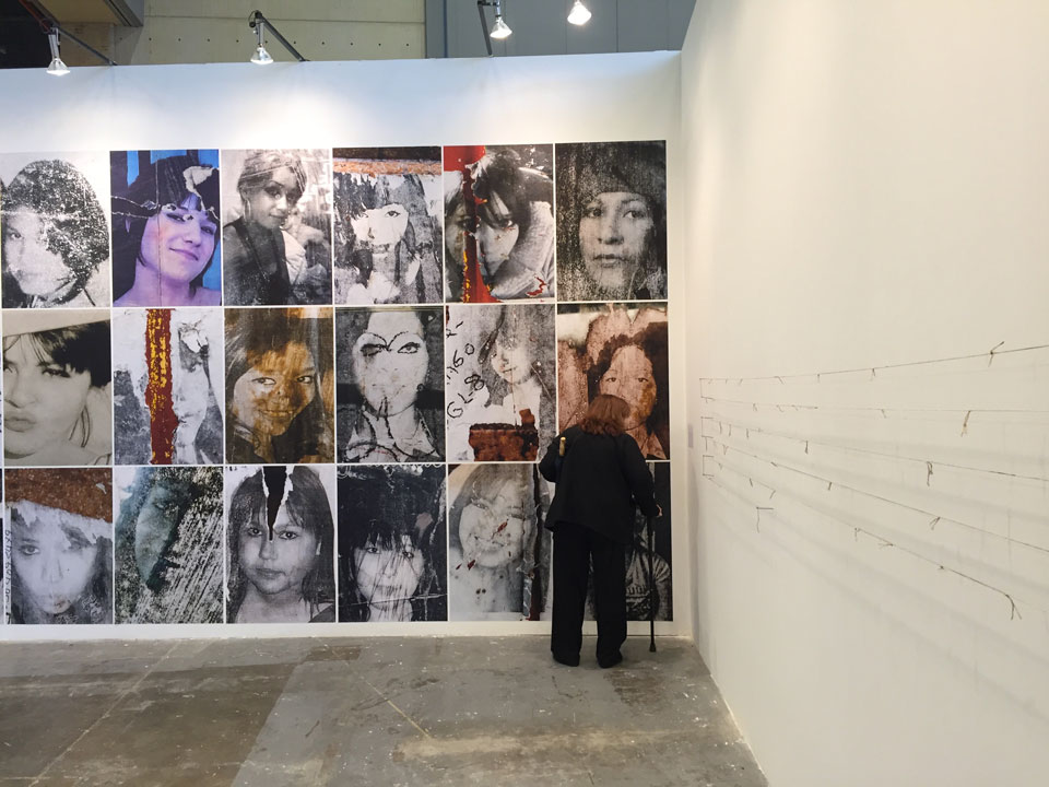 Another of the interesting works was that of Teresa Margolles displayed in the Peter Kilchmann Gallery. Through photography, installations and jewelry works, she captures some of the problems caused by drug cartels in several Mexican cities. Threads used in corpses after an autopsy, pieces of glass extracted from inert bodies after a violent death, and images of missing young woman, become the harrowing radiography of a horror story that is still being written.