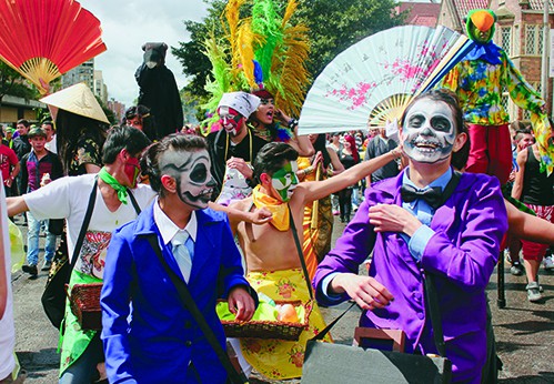 Those who are still learning Spanish may have picked up a few words during the long walk to Plaza Bolivar. Like espuma, for the foam shooting in every direction, falling down to drench the unsuspecting with candy-scented goo (which wasn’t, for the curious, edible). Or carrozas, the floats that put hard-bodied dancers up for all to see, and led the way for the rest to dance in their wake.