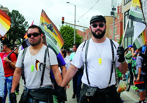 Across the street, orange, yellow, brown and white flags waved above a group of bearded men. One might have wondered if it was some spin on the German flag – until the paw print emblazoned on it came into focus. They were Bears – Osos – and their rugged masculinity was evident from blocks away.
