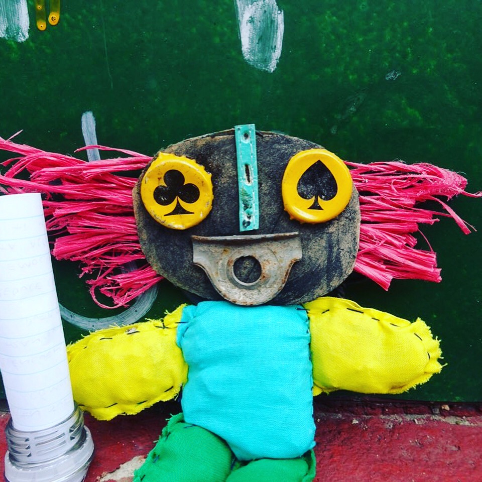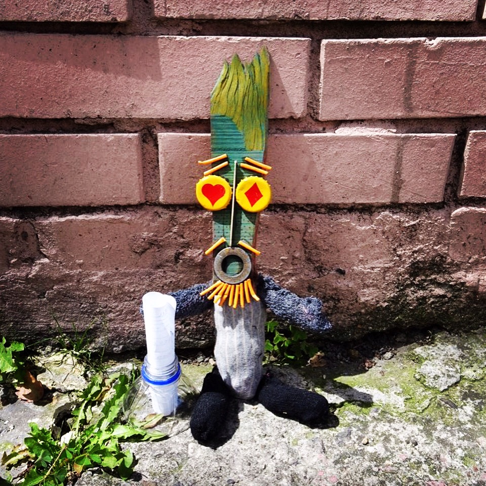 Andy told us that he started making the dolls – which are made from rubbish that he finds in the city – about six years ago while living in Seoul, South Korea. “I wanted to combine street art and poetry in a unique way, so the idea of making dolls just kind of popped into my head. I really enjoy making them and leaving them around different cities because they take people by surprise and kind of break up the monotony of daily routine.”
