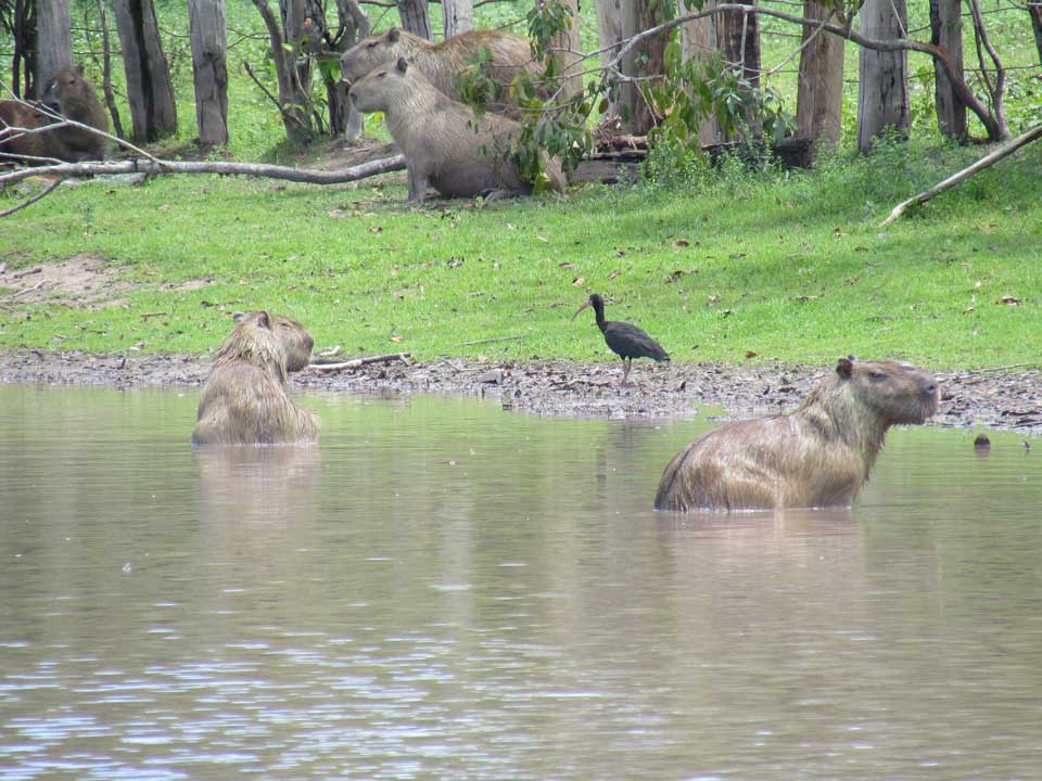 The second finca bequeathed upon us a whole lake chock-full of capybara, honking at each other, being eaten by vultures, mating, swimming and dying in the water. Hundreds of them, although they were shy when we approached. Monkeys are possible sightings, though we didn’t see any, and all kinds of birds. In the finca house, we ate and dozed in hammocks for a while before heading out at dusk to see hundreds more capybara, white tailed deer and even a giant anteater that crossed our path going at a surprising clip.